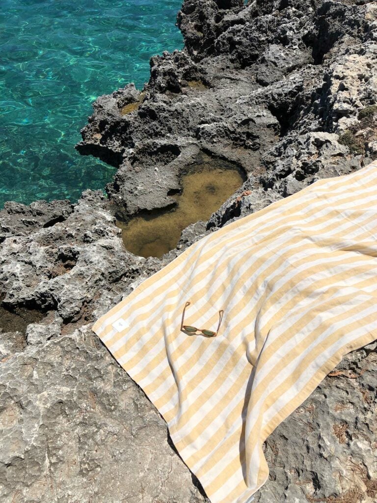 Luxury beach towels for your summer in Italian style. NIMU's exclusive Linen & Cotton jacquard is the result of an extensive research to improve the traditional terry Beach towels and also the light cotton Pesthemals. This luxurious new fabric is light, absorbent and extremely soft while being resistant to use. The fancy wrinkle effect make these towels unique and fashionable to use as a towel or pareo. Embroidery of Initials available to personalise your towel or for Gifting.