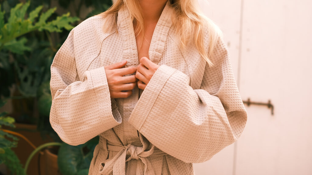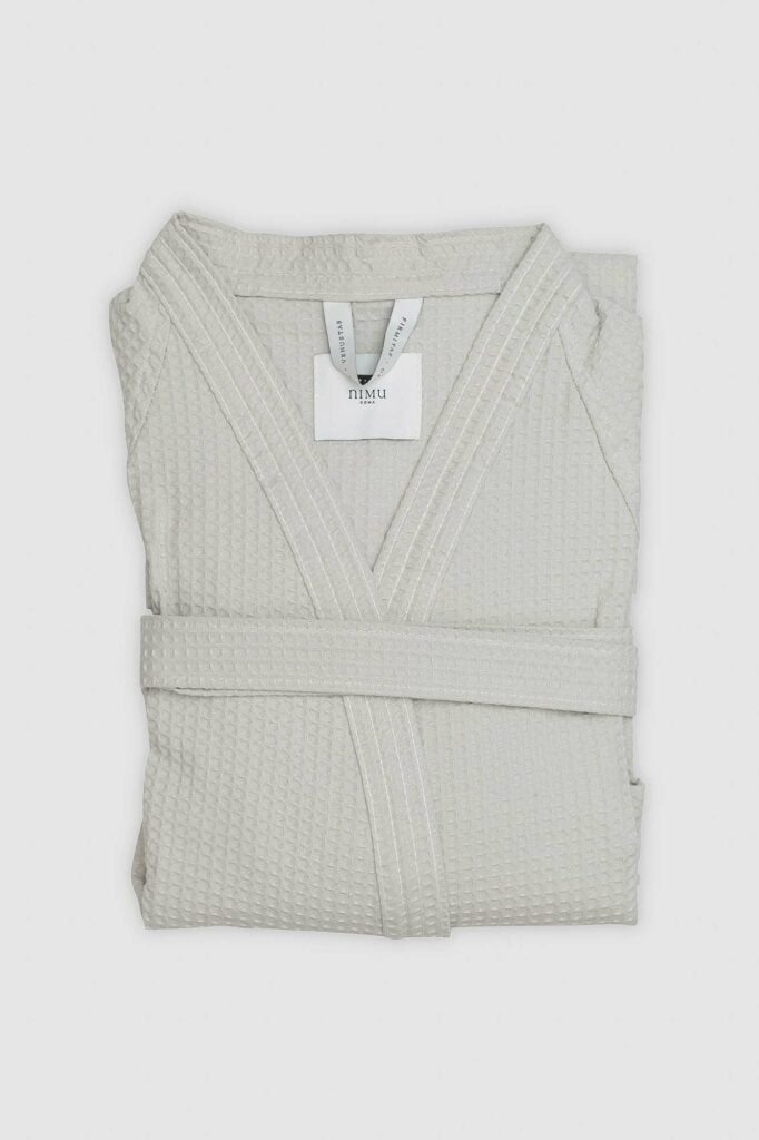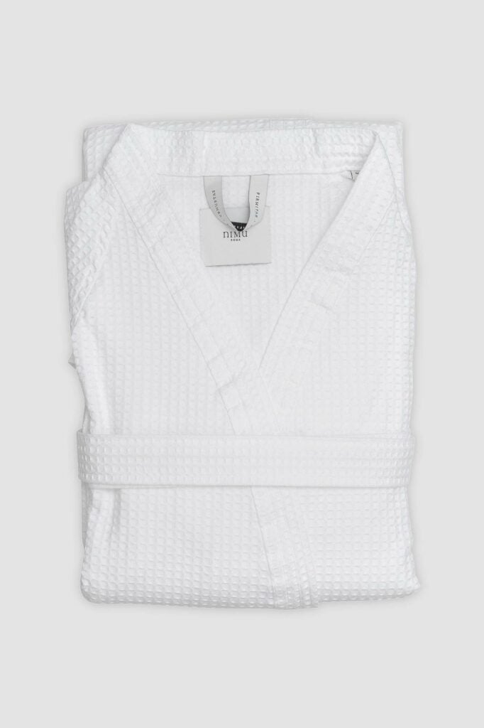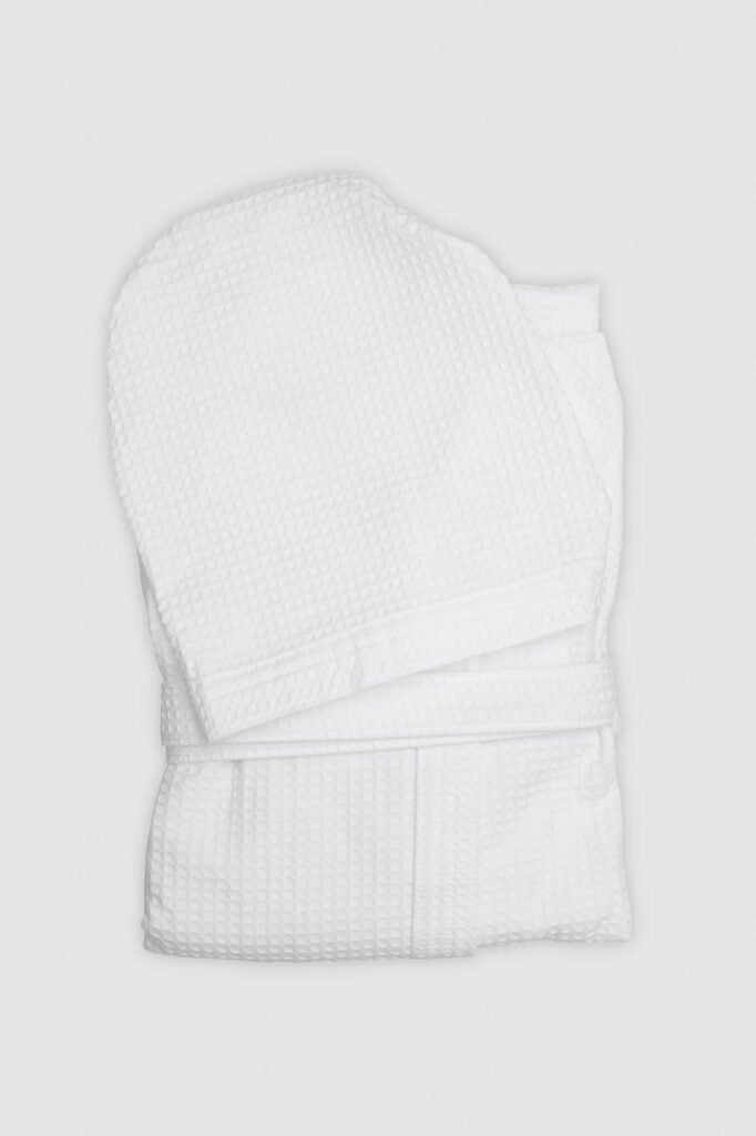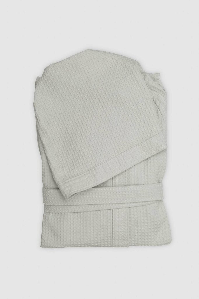 Discover our Luxury Italian Bathrobes in organic cotton waffle fabric. Elevate your daily bath ritual with our light and practical robes. Its waffle weave together with the top quality cotton fiber makes them extremely absorbent, fast-dry and durable. A chic and modern combination.